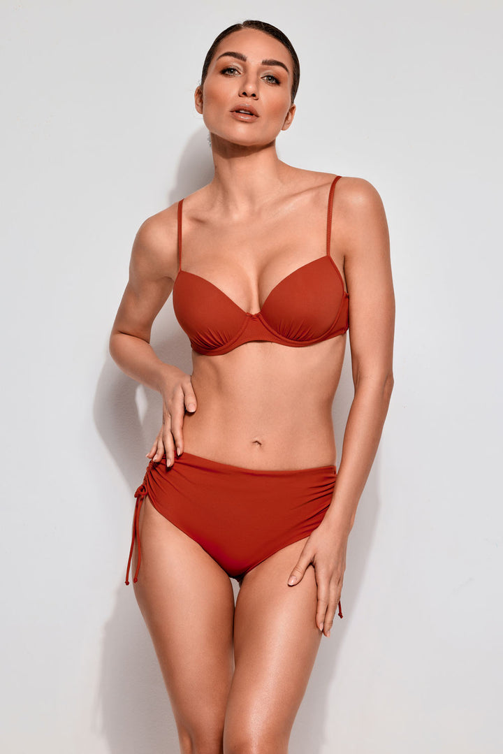 Бикини Ginevra, с балконет и банели, предлага перфектно прилягане благодарение на едноцветния дизайн. Долнището с висока Талия и връзки позволява да подобрите фигурата си. Носете го, за да се чувствате уверени и модерни на плажа.