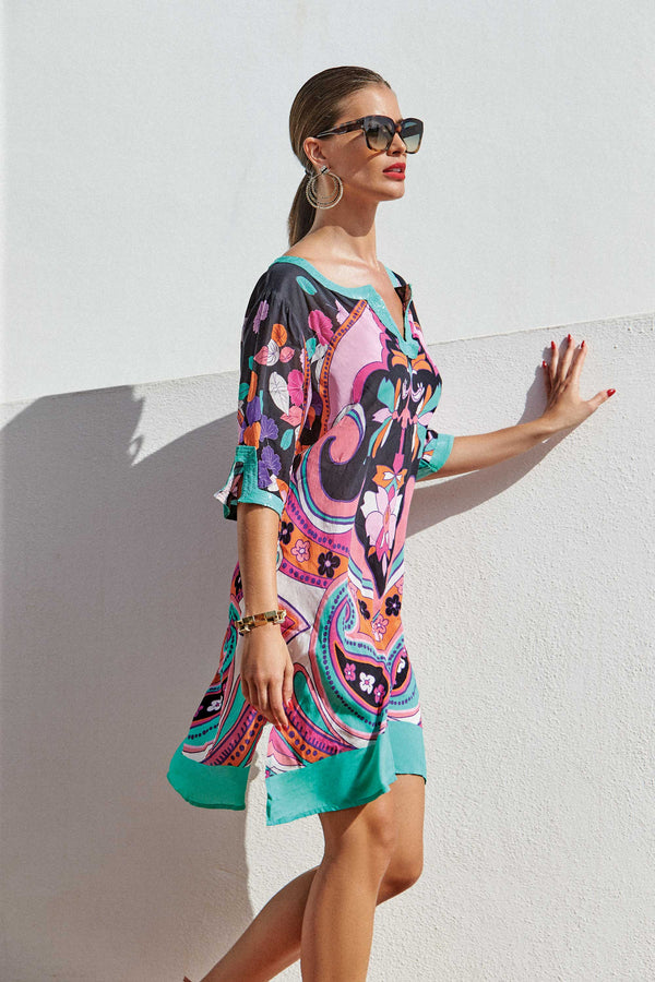 ABITO LUNGO CAMICIA FIORATO TURCHESE