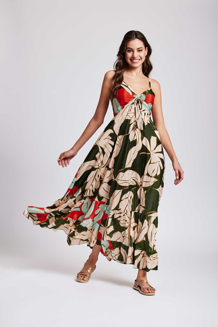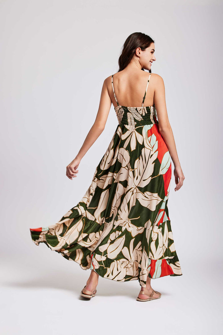 LANGES KLEID MIT PALMTRÄGERN