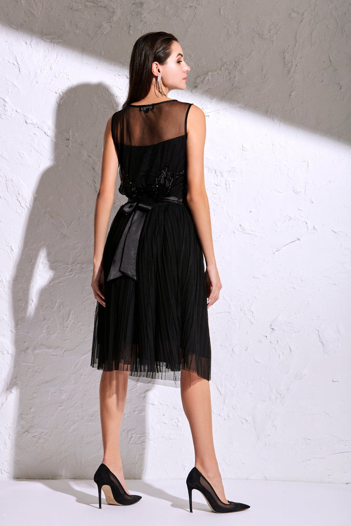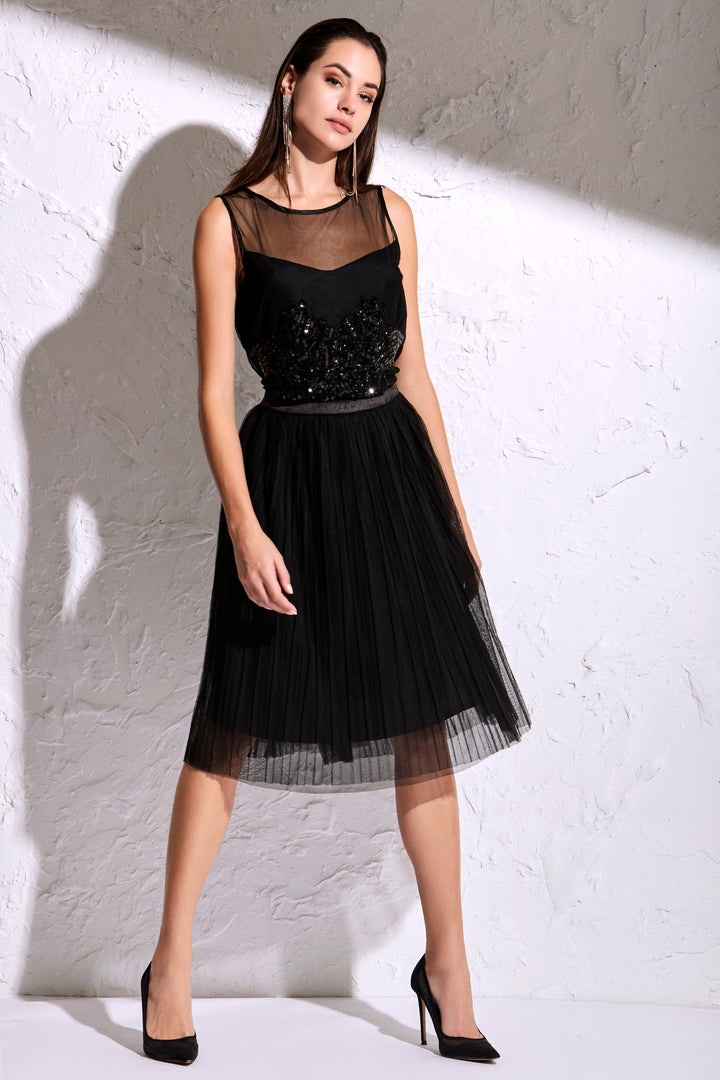 Lαβίτo χωρίς μανίκια με παγιέτες είναι τέλειο για ειδικές περιστάσεις. Η στρογγυλή λαιμόκοψη με διαφάνεια προσθέτει μια πινελιά κομψότητας, ενώ η κορδέλα στη ζωή τονίζει τη σιλουέτα. Το φαρδύ κάτω μέρος και το μήκος μέχρι το γόνατο το καθιστούν άνετο και ευέλικτο. Ένα κομμάτι που φοριέται με στυλ και εκλεπτυσμένο.