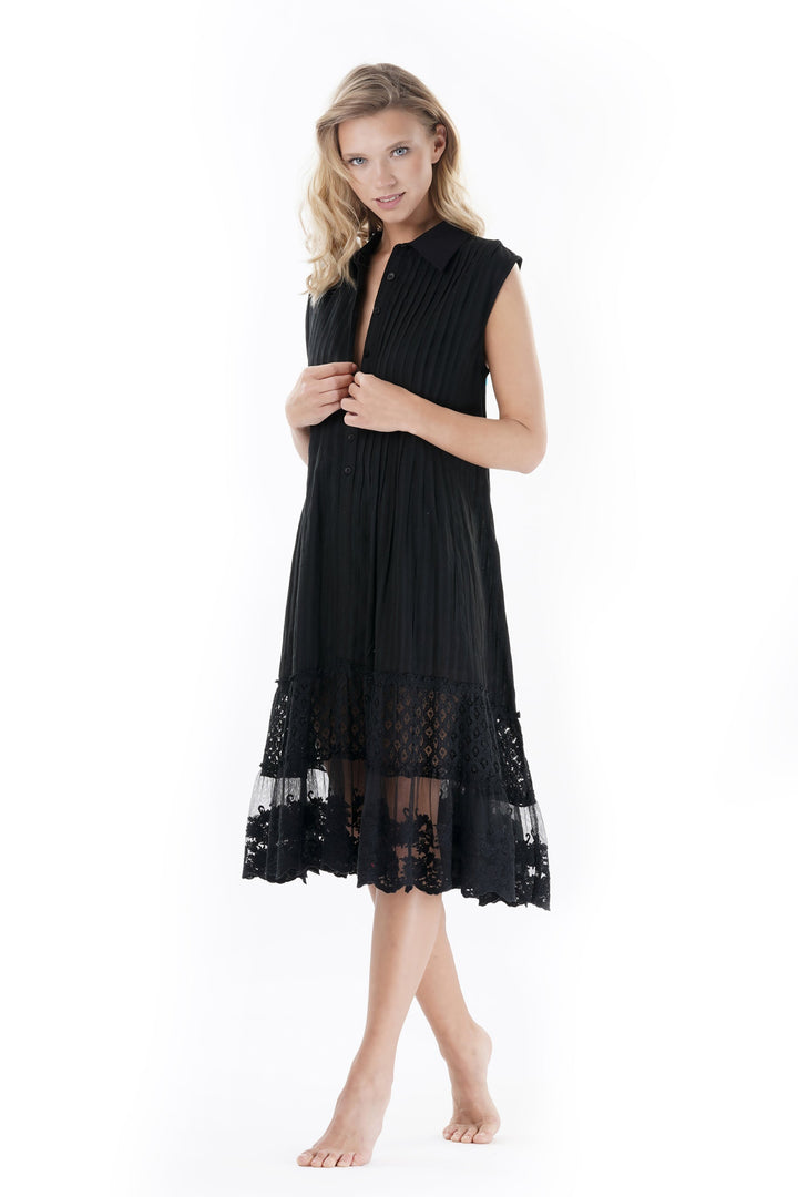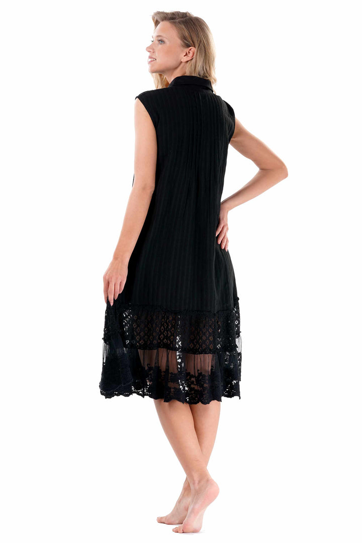 Αυτό το αμάνικο πουκάμισο φόρεμα διαθέτει κομψές λεπτομέρειες από δαντέλα Sangallo, κατασκευασμένο από 100% βαμβάκι για να εξασφαλίζει εξαιρετική διαπνοή και άνεση. Ο εκλεπτυσμένος σχεδιασμός του συνδυάζει κλασικά στοιχεία πουκαμίσου με λεπτές δαντελένιες λεπτομέρειες, καθιστώντας το μια σοφιστικέ επιλογή για καλοκαιρινές περιστάσεις. Το βαμβάκι υψηλής ποιότητας εξασφαλίζει απαλότητα και ανθεκτικότητα, ενώ η δαντέλα προσθέτει μια διακριτική πινελιά θηλυκότητας και υφής.