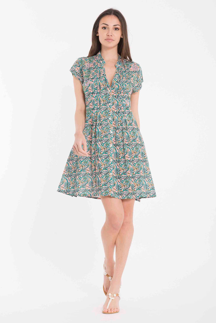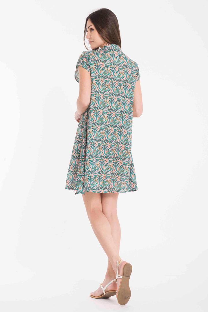Pure cotton caftan with short sleeves and front buttoning, perfect for summer days at the beach or in the city. The tropical pattern captures the essence of the holiday, while the natural fabric ensures breathability and comfort even in the hottest temperatures. A versatile garment that effortlessly transitions from the beach to casual dinner, embodying Mediterranean luxury style with elegant simplicity.