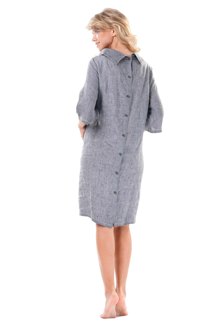 This dress in pure linen combines elegance and comfort thanks to the natural fabric, ideal for staying cool on the hottest days. The 3/4 sleeve offers a refined and versatile fit, while the button closure on the back adds a distinctive and practical detail. Perfect for those looking for a sober yet polished style, suitable for multiple occasions.