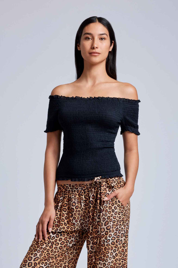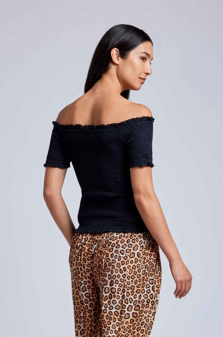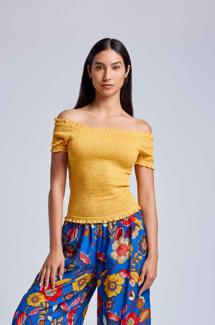 This crop top in pure cotton fabric is ideal for summer days. Thanks to its crop model and short sleeves, it offers a trendy and comfortable look. The boat neckline emphasizes the shoulders while the elastic makes it suitable for every body type. A must-have for every summer wardrobe.