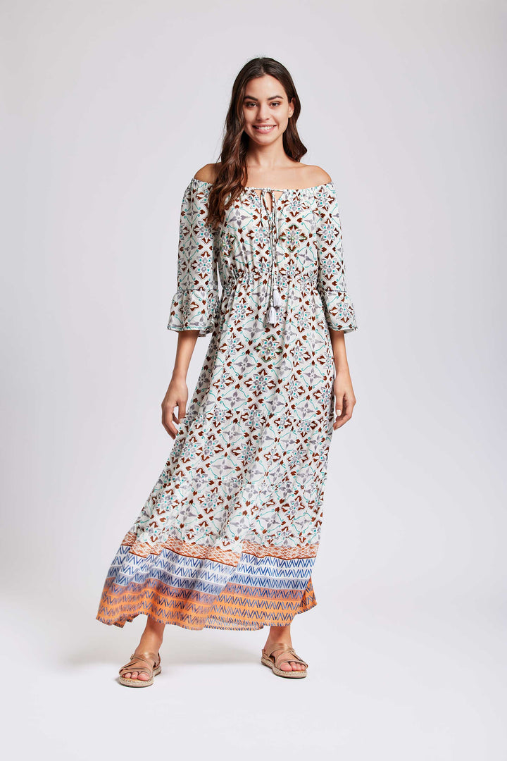LONG DRESS WITH BOAT NECK AND VIETRI PATTERN