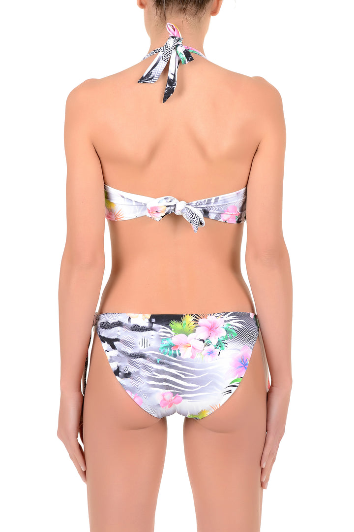 This one-piece swimsuit with a halter neck combines an elegant design with a refined pattern, ideal for enhancing every silhouette. Made from shaping fabric, it ensures comfort and support, improving fit and figure. Perfect for those seeking style and functionality in a single garment.