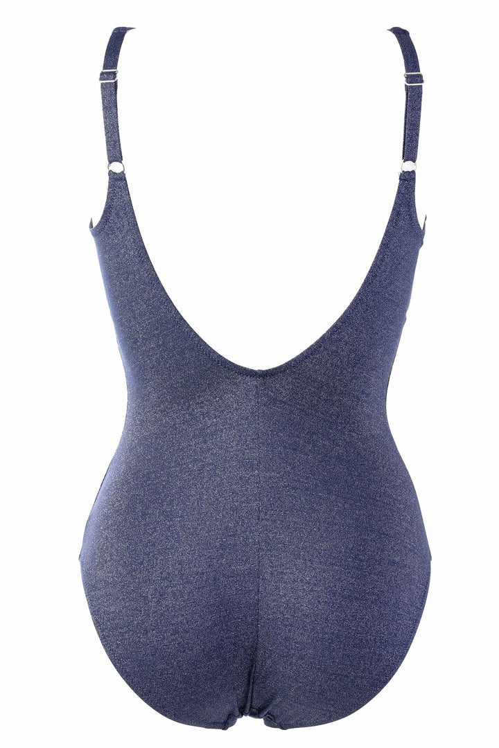 This elegant one-piece swimsuit features a refined jewel detail that adds a touch of class. The adjustable straps ensure a customized and comfortable fit, while the round neckline on the back discreetly and elegantly enhances the back line. A perfect choice for those seeking style and functionality in a single garment.