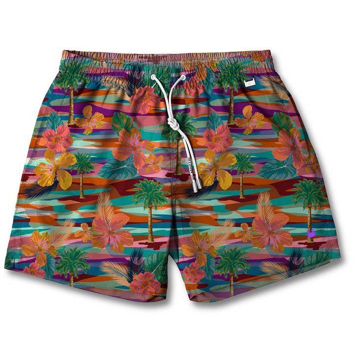 Explore the wonders of the sea in our Hawaii swim trunks. The boxer style and tropical pattern will make you feel like a real islander while the elastic waistband and flap pocket on the back offer practicality. With an embroidered crab and regular fit, this is a must-have for summer.