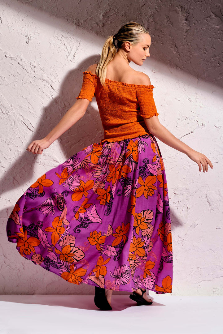 Add a touch of elegance and freshness to your look with the floral long skirt! The long model will give you a refined look, while the elastic waist ensures a comfortable fit and suitable for all sizes. The floral pattern will add a touch of nature and color to your outfit. Discover it now!
