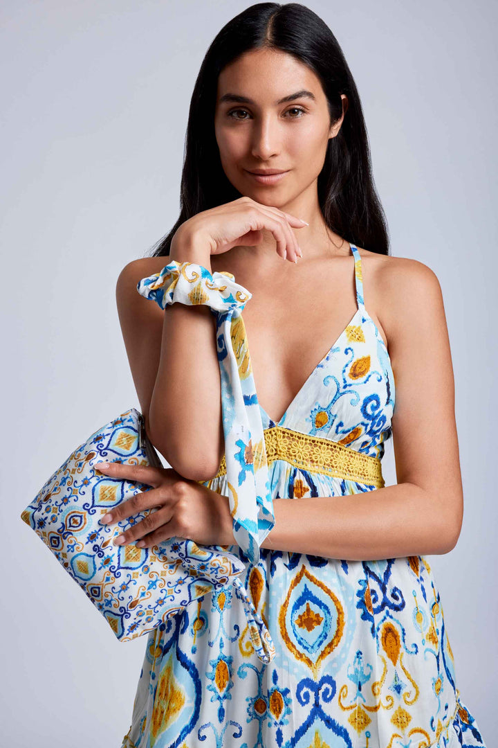 Take on every adventure with the Vietrese clutch! Closed with a secure zip, this clutch is perfect for carrying everything you need, without sacrificing its elegance. Wear this clutch by hand and immerse yourself in the vibrant Vietrese pattern !