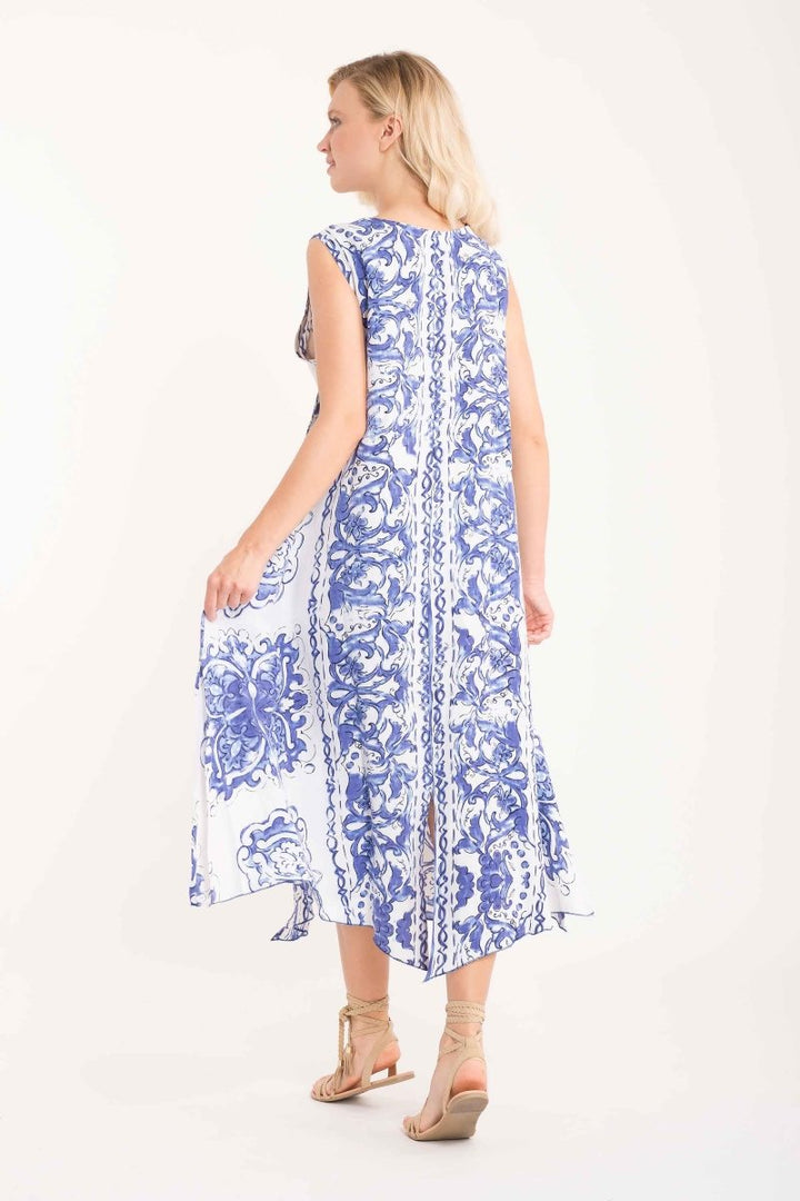 Give your best with the Dress Maioliche. The long, sleeveless model with a v-neck and maiolica patterns takes you on an adventure without limits. Thanks to its comfortable fit, there are no impossible challenges for you!