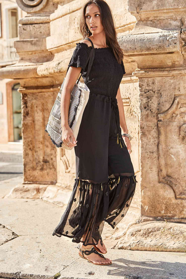 This elegant boat neck top gently frames the shoulders, perfect for a sophisticated and versatile look. The elastic bust ensures a comfortable and snug fit. An essential piece with a clean line, ideal for creating refined outfits both in casual and more formal versions.