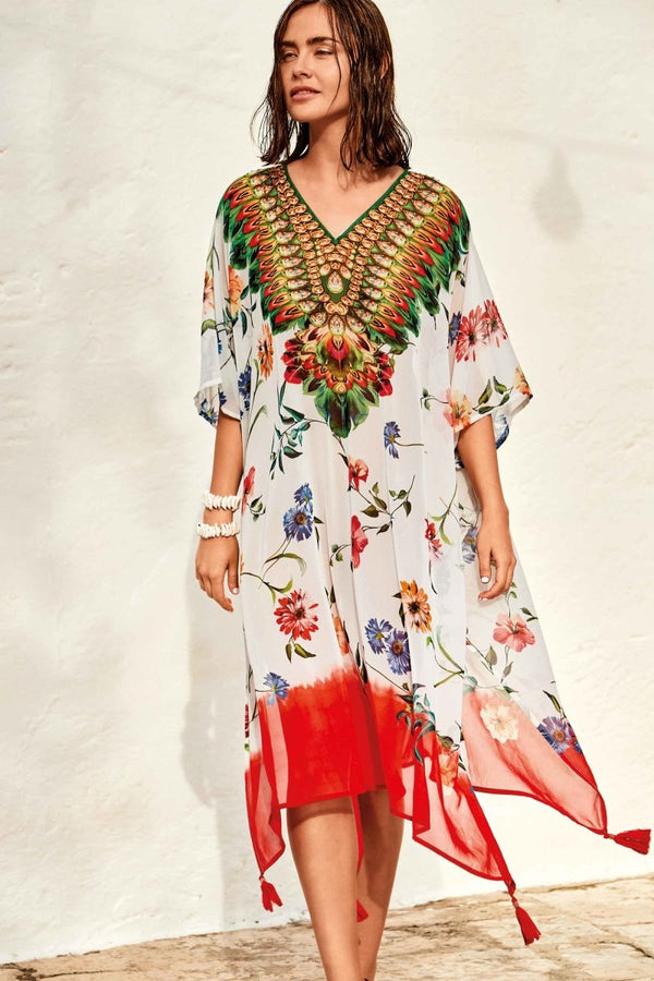 LONG BANDEAU DRESS IN LACE SANGALLO