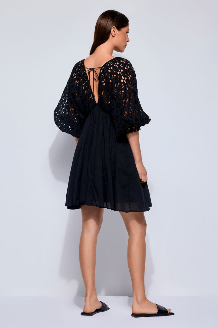 Make your outfit unique with the fine lace dress! Made of fine cotton Sangallo lace and lined, with a deep V-neck and mini length. Enhance your body with a chic and refined allure. You can't give up a touch of elegance!