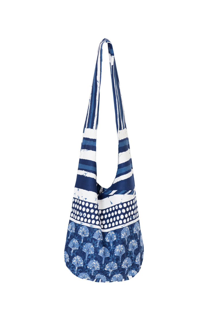 This beach bag, made of pure cotton, offers a durable and breathable option to carry your beach essentials. The blue-toned pattern adds an elegant and nautical touch, perfect for completing your summer wardrobe while ensuring reliable performance at the beach or poolside.
