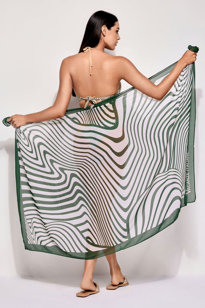 The Digital Waves Foulard pareo is made of soft Georgette fabric and features a modern and sophisticated geometric pattern . Perfect for the beach or on holiday, it can be worn as a pareo or as a scarf for a versatile and trendy look.