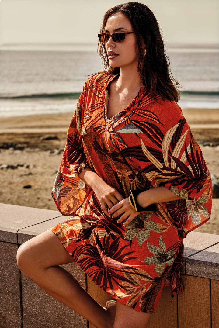 The Edera dress in viscose with batwing sleeves is perfect for hot days and holidays. Its relaxed and light design offers comfort and freshness. Also ideal for holidays thanks to its midi length and wide design. A must-have for summer!