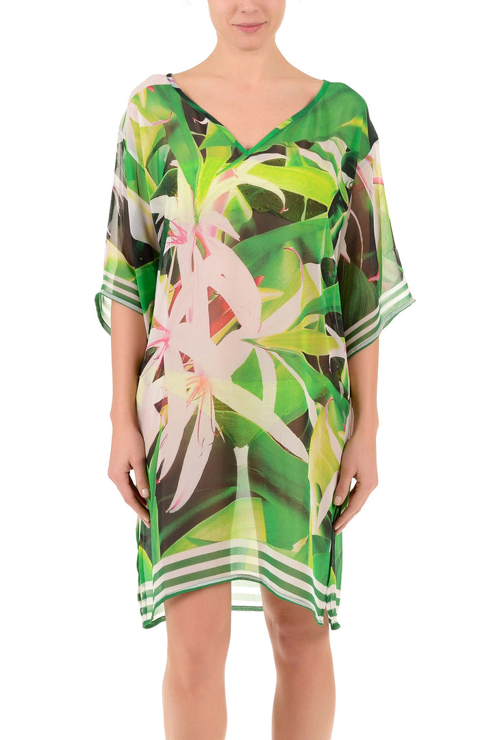 This caftan with a V-neck enhances natural elegance. The hand-embroidered botanical pattern gives character and authenticity to the garment, perfect for those seeking unique pieces with artisanal details. Ideal for summer evenings by the sea or refined casual occasions. Comfort and style meet in this versatile garment, which easily adapts to different contexts.