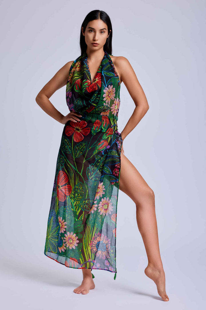 This cotton scarf sarong will make you feel fresh and fashionable. With its floral print, it stands out from all the others. Perfect for any occasion, it gives a touch of elegance with its dimensions of 100x180 cm.