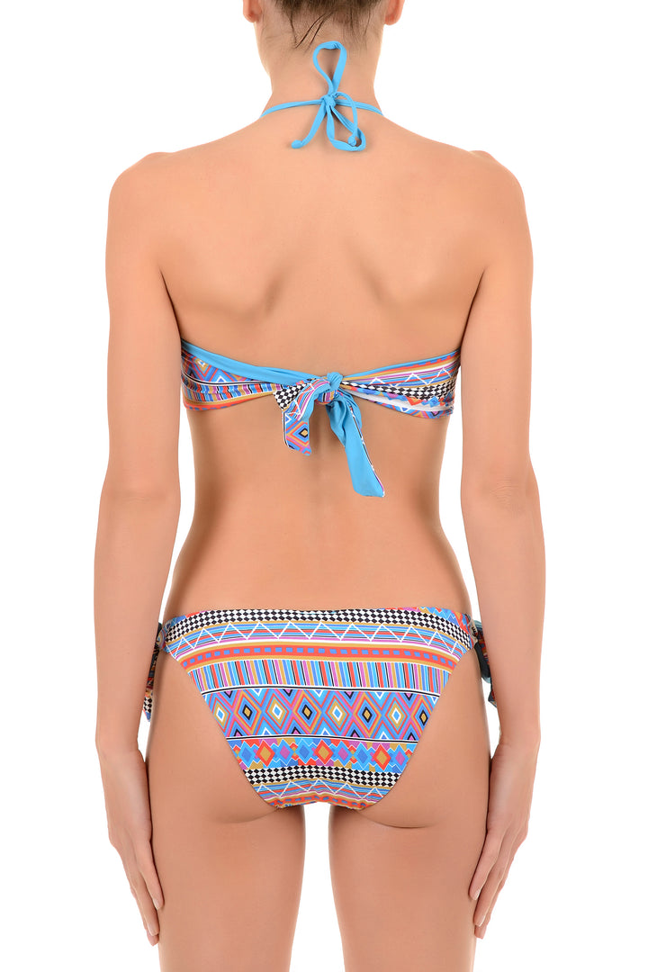 The Nicole bandeau bikini with bows captures the essence of Italian coastal style. The ethnic geometric pattern gives character and personality, perfect for those looking for a swimsuit that combines elegance and originality. The bandeau design offers support and comfort, while the bows add a touch of sophisticated femininity.