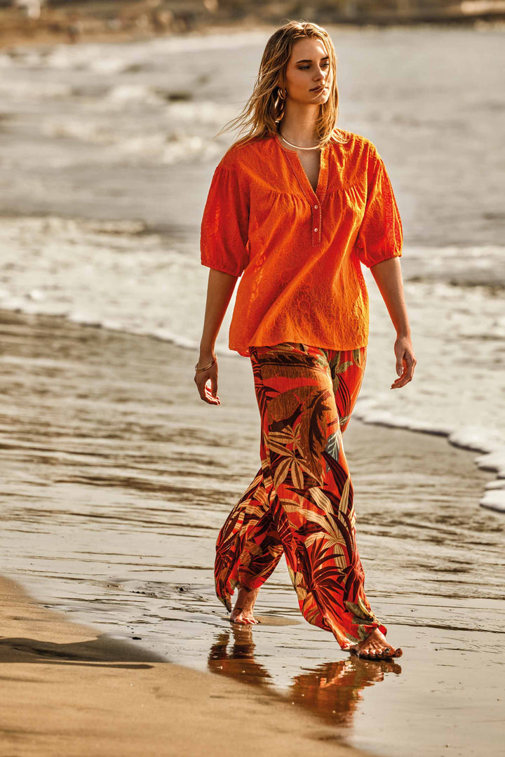 The Edera palazzo pants in tropical viscose combine elegance and comfort for a flawless summer look. Thanks to the lightweight fabric and wide fit, they will be your ideal ally on hot days. With a loose and comfortable design, and the elastic at the waist, they are perfect for any occasion.