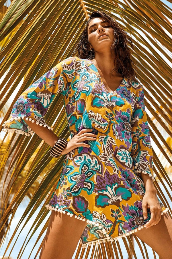 Top top with elastic, half sleeves and boat neckline. This simple and versatile model is perfect for a casual and fresh look, suitable for any summer occasion. Its comfortable fit makes it ideal to be paired with jeans or high waist skirts.