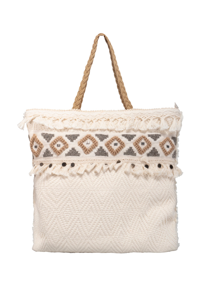 This handcrafted bag measuring 44x52 cm is spacious, light and versatile. Perfect for carrying everything you need with you, from the office to the beach. The embroidery and weaving details add a unique touch to this high-quality bag.