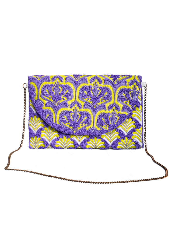 This handcrafted clutch is an elegant and sophisticated accessory to carry by hand or with the thin shoulder strap. Its metal closure ensures security and style. The embroidered beads add a touch of luxury, while the dimensions make it perfect for holding all your essential items.