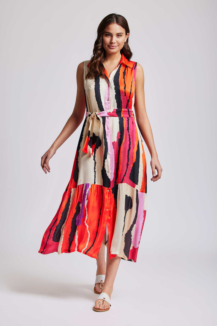 Add timeless elegance to your wardrobe with the Mora Sleeveless Shirt Dress. Featuring a traditional collar and a comfortable full ruffled skirt, this dress is perfect for any occasion. The included waist waist adds a touch of sophistication and allows you to shape your silhouette with grace.