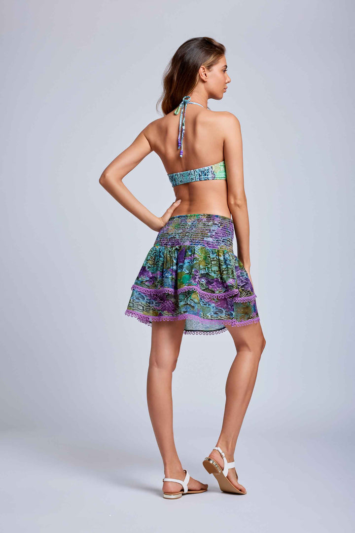 Take on your holidays with boldness in the snakeskin bandeau Brazilian bikini! The removable cups offer a custom fit while the ties add a touch of sensuality. Plus, the snakeskin pattern will make you stand out on the beach. For a true summer adventure!