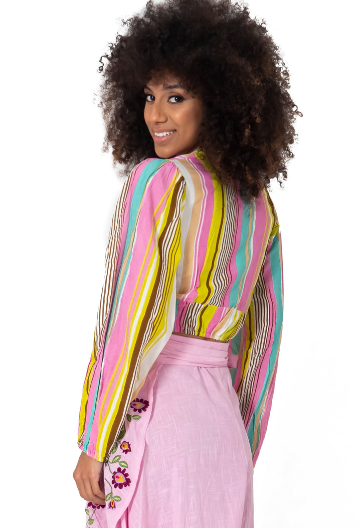 Our blouse is made of soft viscose and features an ultra-summer striped pattern. With a deep V-neck, long sleeves, and buttons at the front, this blouse is perfect for warm and trendy days. Let yourself be captivated by the pattern stripes and enjoy a fashionable and comfortable look.