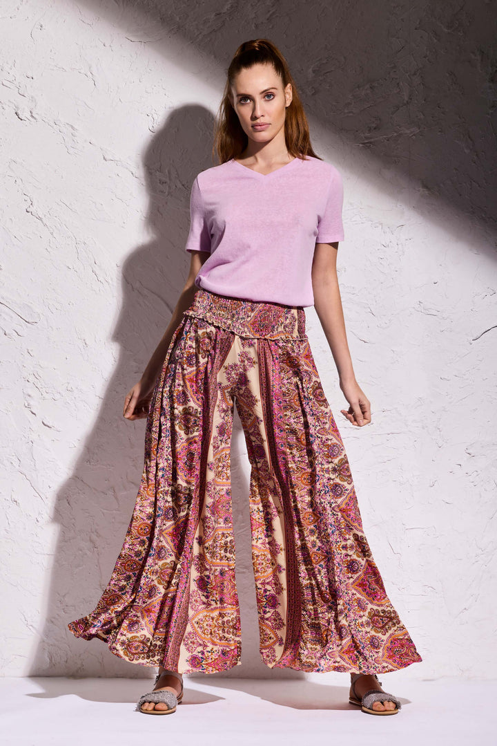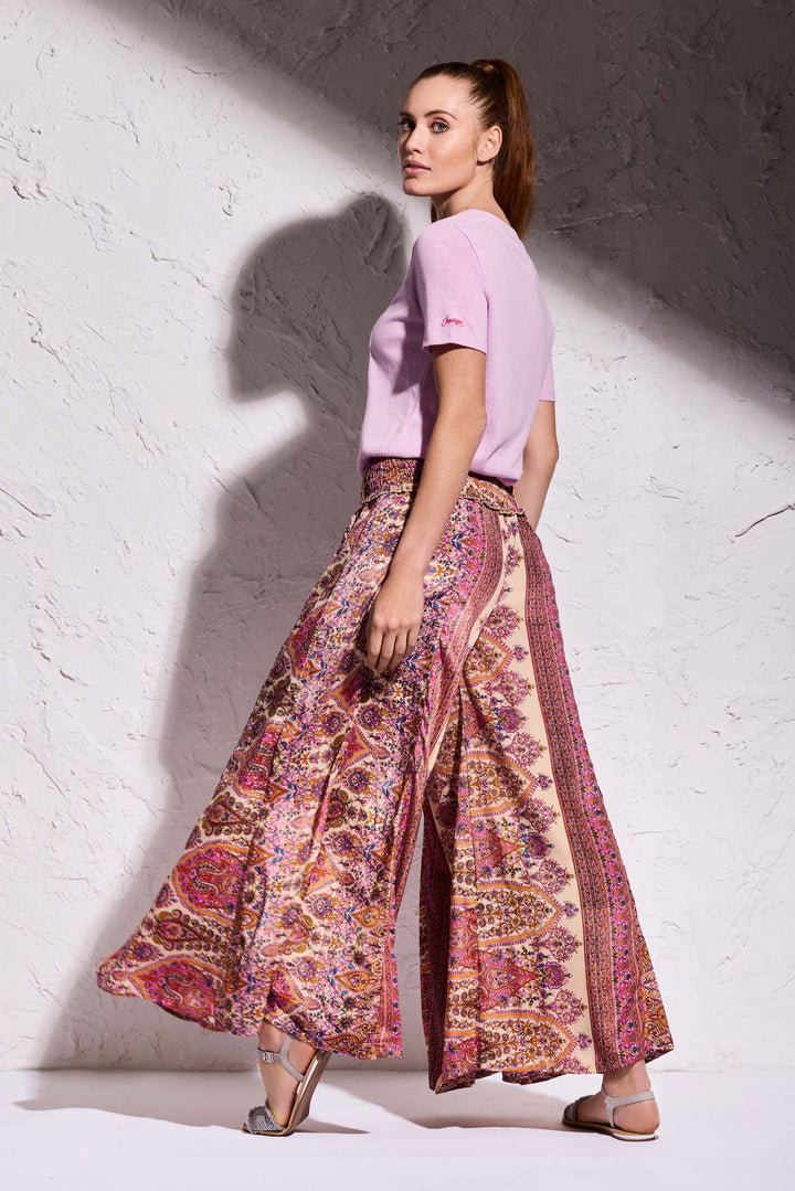 These creatively styled ethnic pants are the perfect mix of comfort and fashion. The palazzo cut allows you to move freely, and the drawstring at the waist ensures a perfect fit. Ideal for a casual yet chic look.