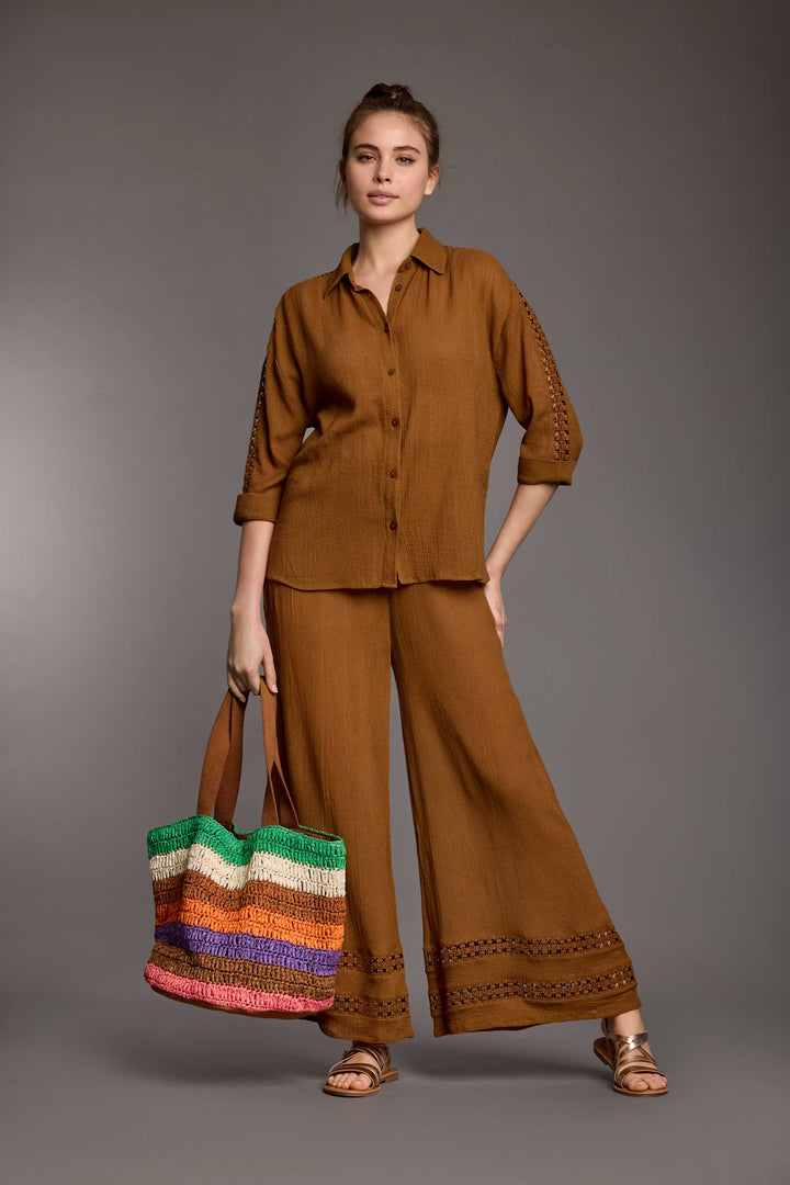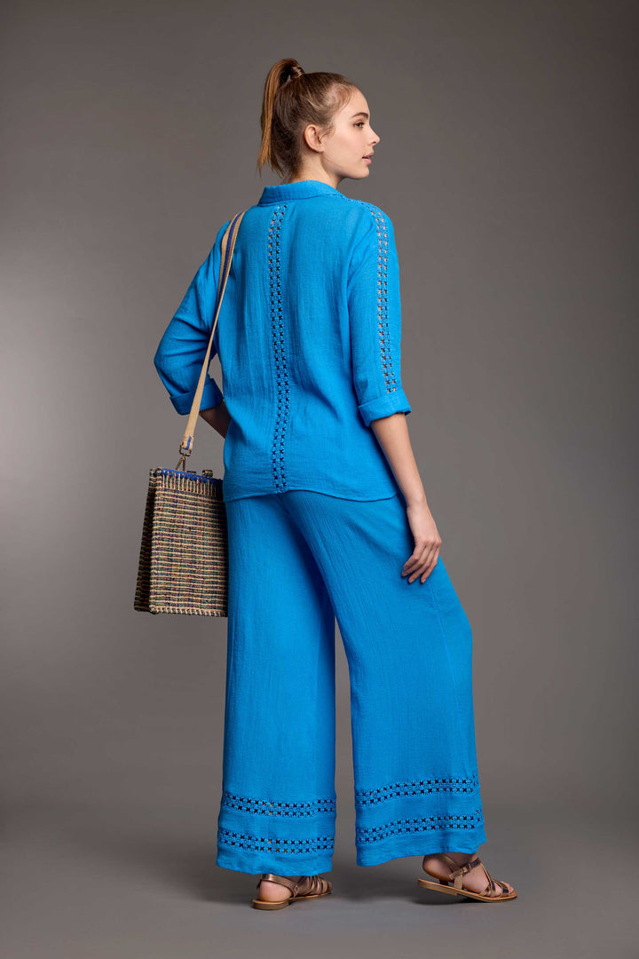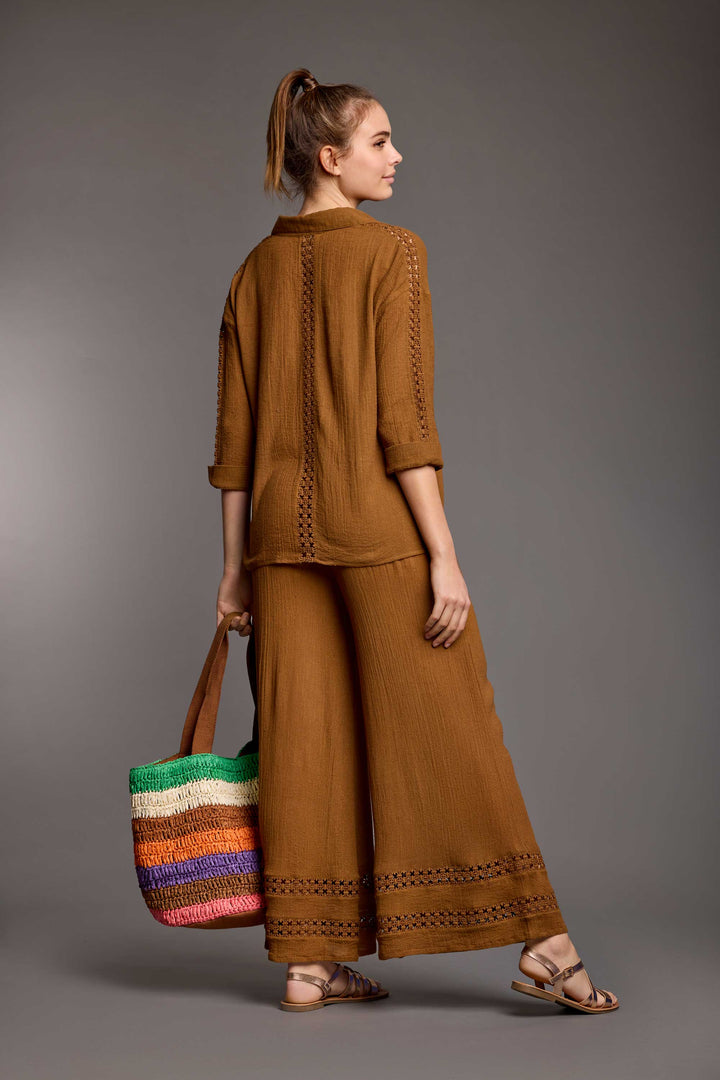 The pure cotton palazzo pants by Dixie are comfortable and refined. Ideal for creating casual chic summer looks, they feature a wide leg, elastic at the waist, and are made of pure cotton. Perfect look guaranteed.