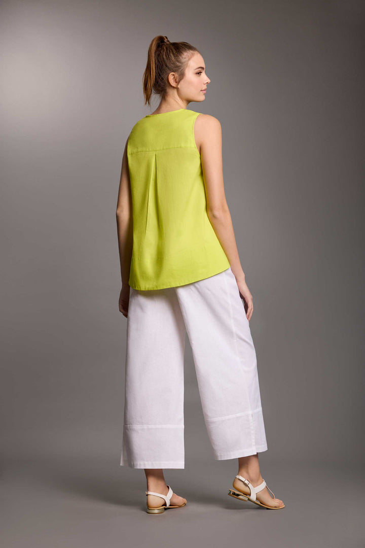 The sleeveless top Vanda is perfect for casual summer outfits. Made of pure cotton, it ensures a fresh and breathable garment, while the loose fit and V-neck make it comfortable and versatile. With its simple style, it is a must-have in your summer wardrobe.
