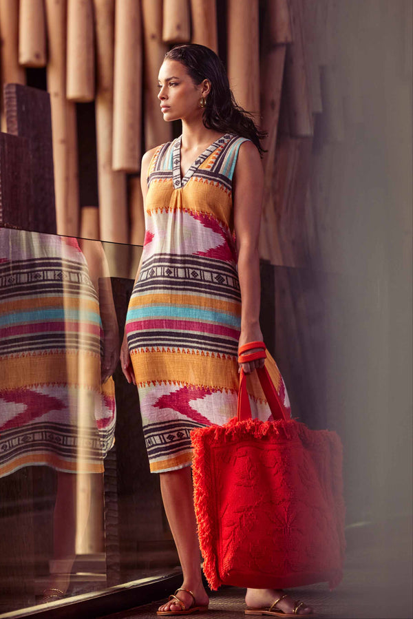 GEOMETRIC PATTERN LONG DRESS WITH STRAPS