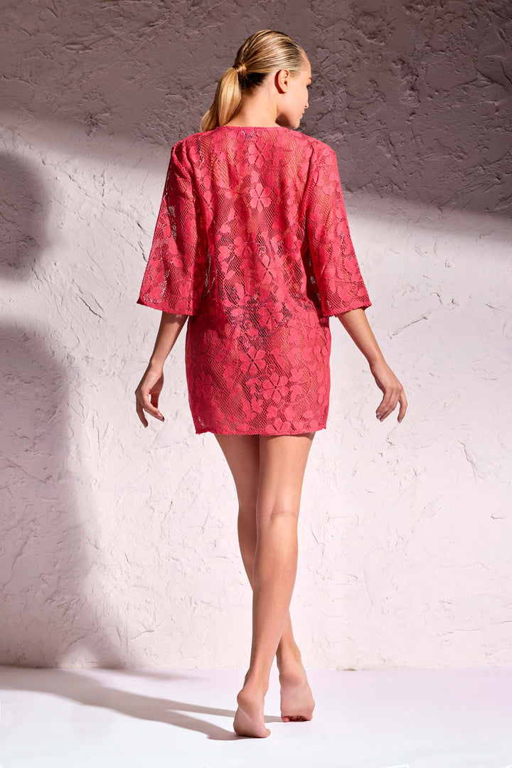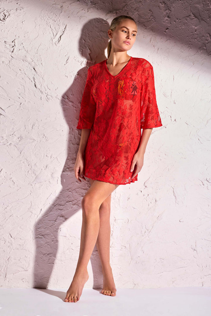 Our Emma dress is ideal for a comfortable and elegant look. Featuring a relaxed fit, V-neck and ¾ sleeves, this solid color dress is embellished with refined embroidery. Perfect for all occasions, from the office to special evenings.