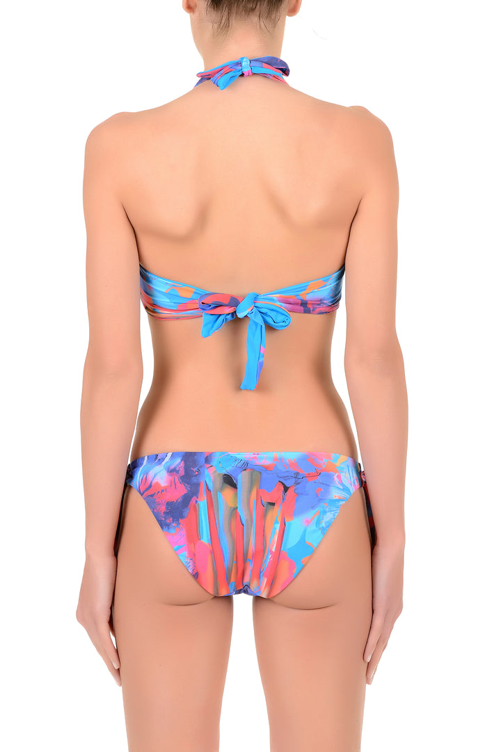 The triangle bikini with pattern is designed to offer an adjustable and comfortable fit thanks to the neck tie and side-tie bottoms. The pattern fabric gives a distinctive and contemporary touch, ideal for those seeking style and practicality at the beach or pool. The triangle silhouette enhances the figure, ensuring personalized comfort.