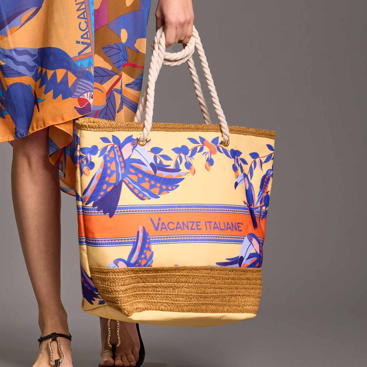 The Lola beach bag in cotton blend with pattern is the perfect accessory for a fresh and vibrant summer look. With its modern multicolored design, it is ideal for a touch of liveliness and style. With its capacity, it is practical for everyday use and perfect for the beach or leisure time.