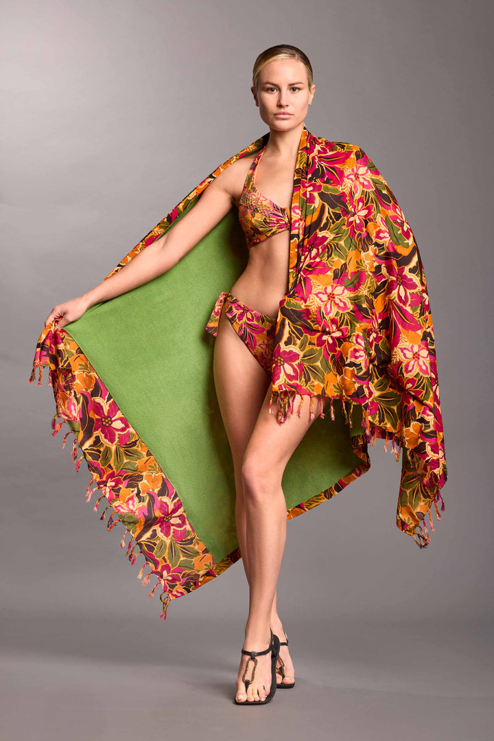This Esmeralda beach towel is perfect for adding a splash of color to your summer days. With its vibrant floral print, it is the ideal accessory for the beach and pool. Thanks to its soft cotton and lightweight design, it is easy to carry and perfect for a unique summer style.
