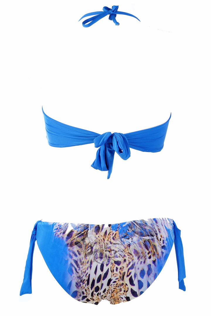Ce bikini présente un élégant design bandeau avec des nœuds amovibles, qui vous permettent de personnaliser facilement le look. Réalisé avec un imprimé animalier raffiné, il ajoute une touche audacieuse et sophistiquée à votre collection de maillots de bain, tout en garantissant un ajustement confortable et valorisant. Parfait pour ceux qui apprécient un beachwear polyvalent avec une touche de style à la mode.