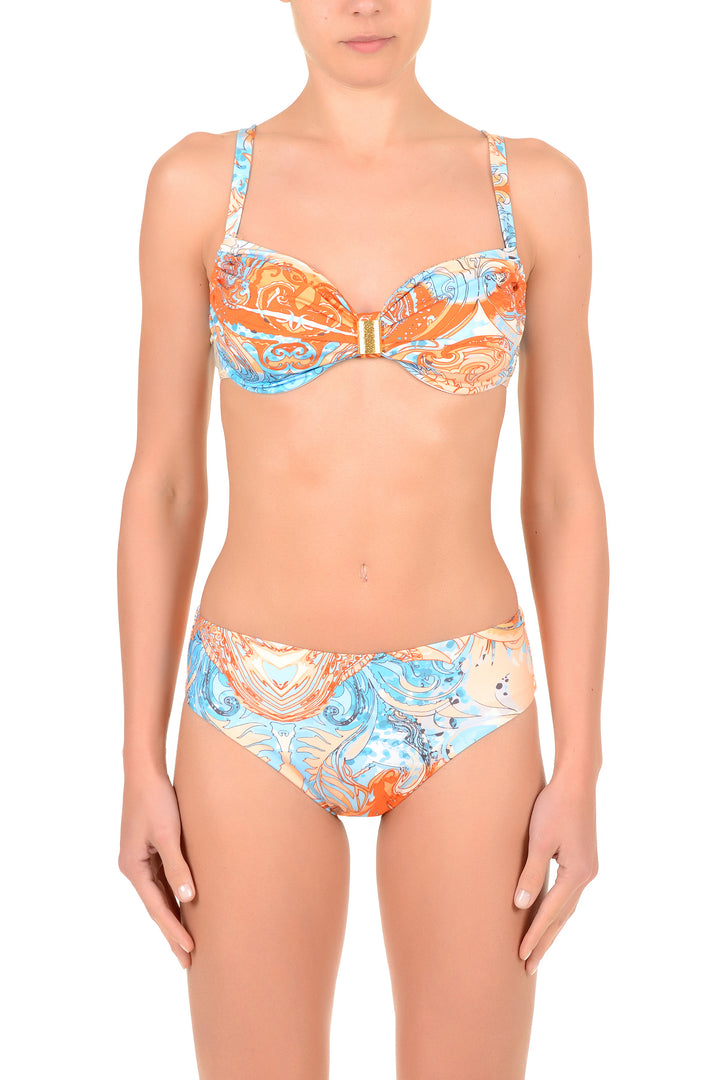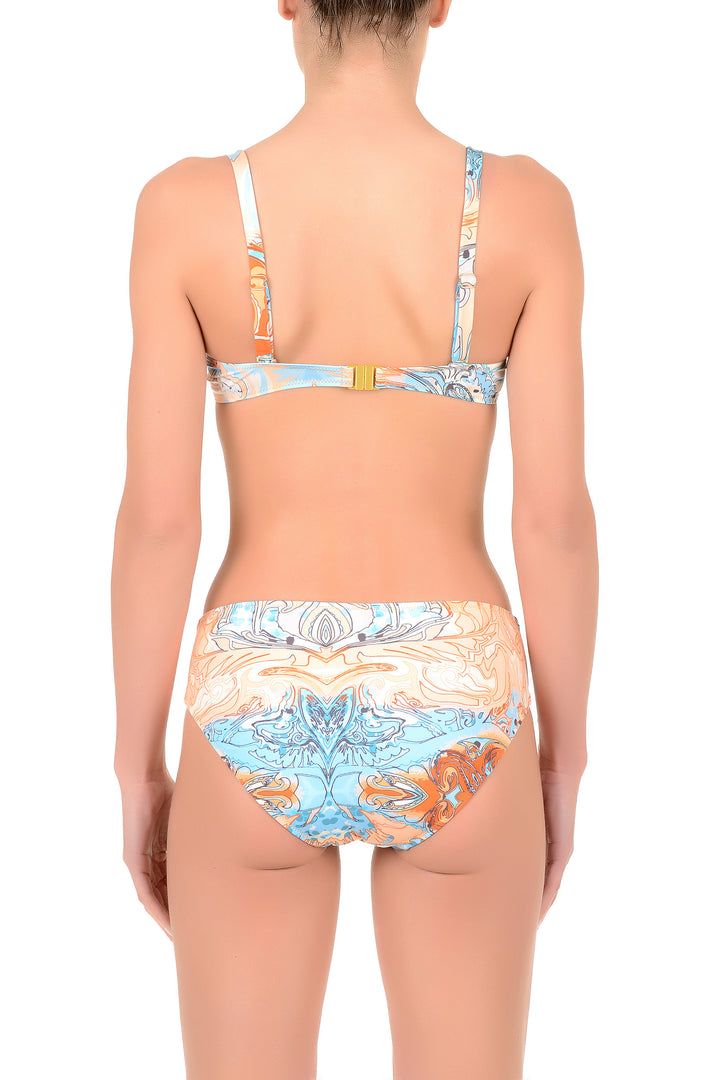 Bikini au style raffiné, caractérisé par un délicat motif paisley qui ajoute une touche bohème-chic et intemporelle. Le haut est doté de bretelles réglables, conçues pour offrir un maximum de confort et un ajustement personnalisé
