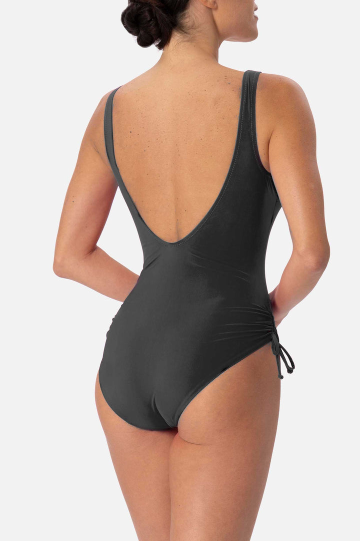 Jednodijelni kupaći kostim s vezicama Samira je elegantan i moderan komad, idealan za one koji žele biti drugačiji. Bočne vezice s trakicama i uklonjive košarice osiguravaju savršeno pristajanje, dok podesive naramenice omogućuju prilagodbu kostima vlastitim potrebama.