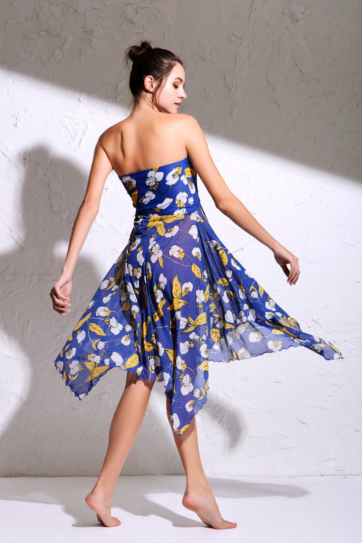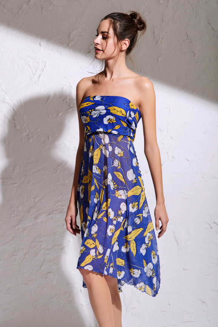 Questo abito a fantasia astratta bianca e nera è la scelta perfetta per un look elegante. Realizzato in morbido tessuto velato, presenta una fascia asimmetrica che può essere indossata al seno per trasformare la gonna in un vestito con uno spacco laterale profondo. Massimizza lo stile e la versatilità con questo abito-gonna blu.
