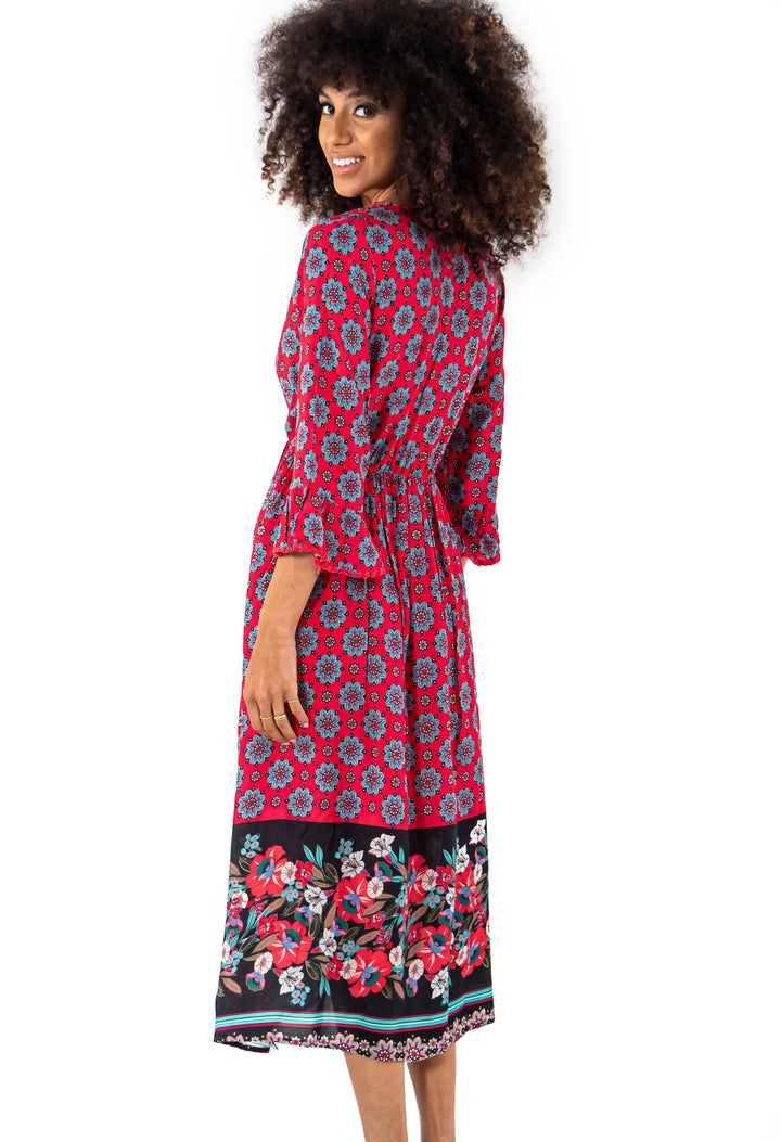 L'abito lungo Isla Mujers è un capo elegante e moderno, perfetto per le tue serate estive. Realizzato con un modello lungo e uno scollo a V, questo abito presenta una bellissima fantasia floreale e maniche con volant, che aggiungono un tocco di femminilità. Inoltre, la vita elastica garantisce una vestibilità comoda e perfetta per ogni silhouette.