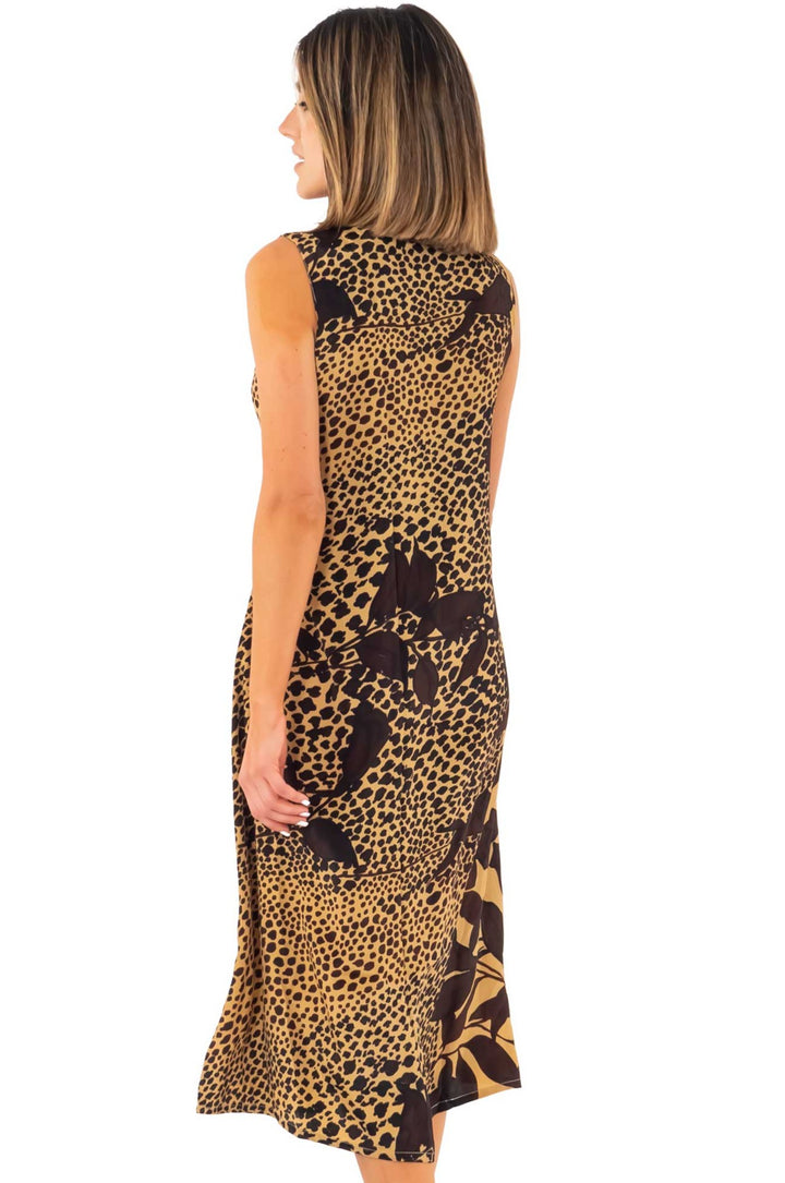 Questo abito lungo è perfetto se vuoi un look casual e di tendenza. Con la fantasia maculata e lo scollo a barca elastico con laccetti, ti farà sentire al top della moda. Inoltre, il modello lungo e smanicato ti permetterà di muoverti in libertà e di essere comoda in ogni occasione.