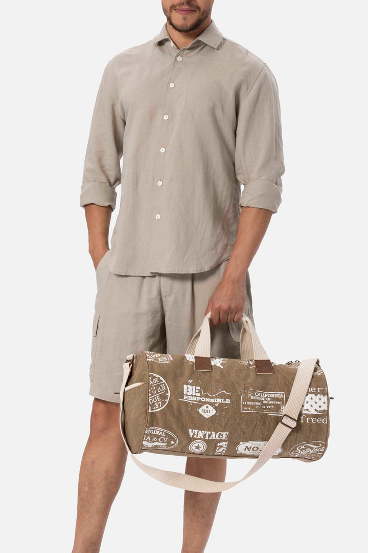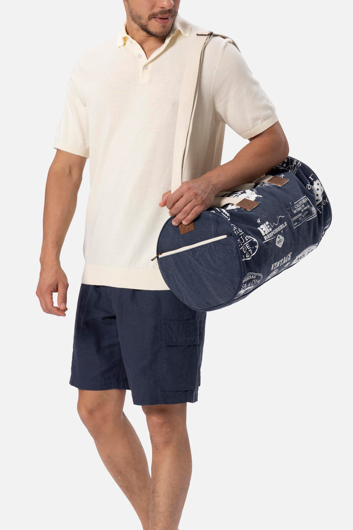 Borsone da uomo. Grazie al suo design capiente, puoi portare con te tutto il necessario per le tue giornate al mare. Con comodi manici e tracolla, è ideale per la spiaggia, la piscina e le attività sportive. Realizzato in puro cotone, unisce stile moderno e funzionalità.