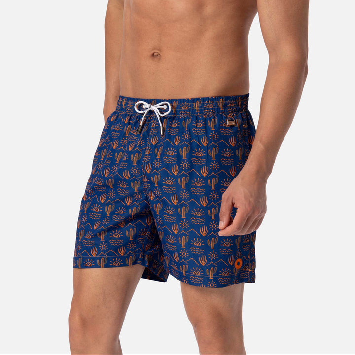 I boxer mare Cactus in fantasia estiva offrono un design elegante e praticità grazie al tessuto tecnico Soft Touch, che garantisce una vestibilità comoda e asciugatura rapida. Ideali per affrontare ogni avventura estiva, con tasche laterali e vestibilità regolabile tramite fascia elasticizzata.