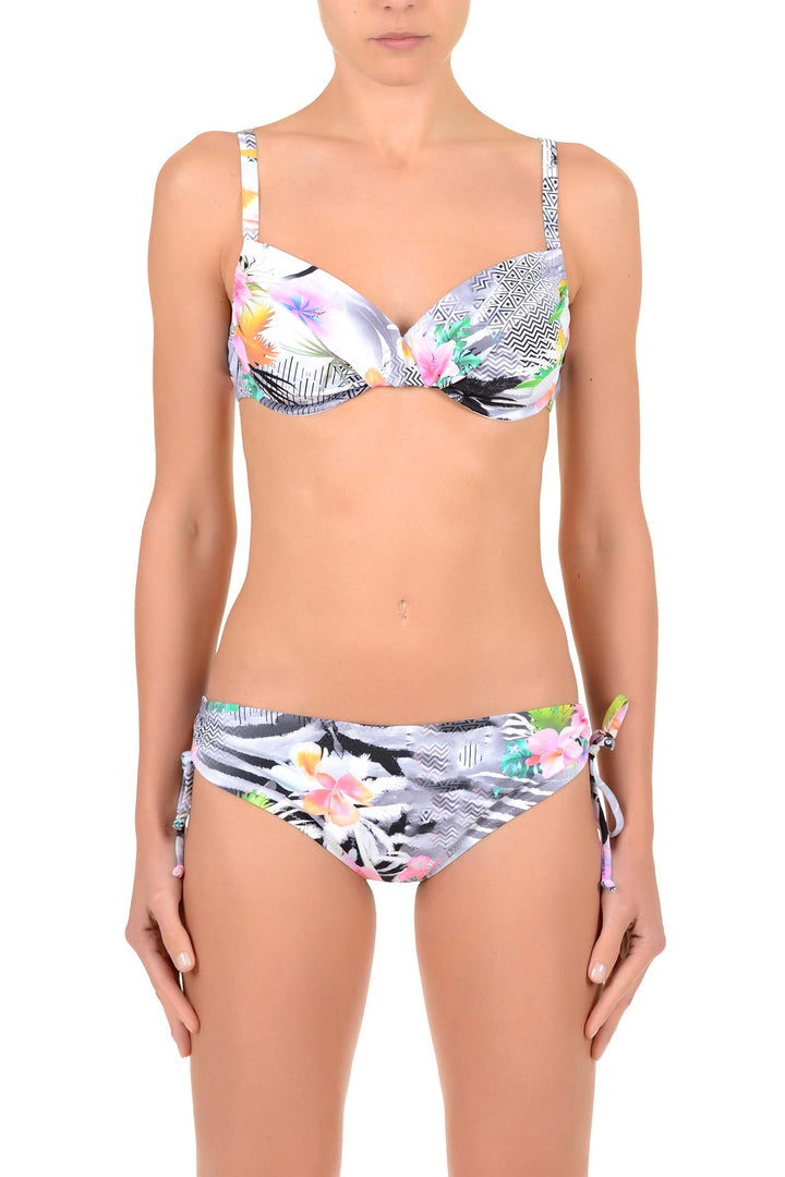 Este bikini com copas oferece um suporte ótimo e um ajuste confortável. Os laços adicionam um toque de elegância feminina, enquanto as ombreiras ajustáveis permitem adaptar o fato de banho perfeitamente às suas necessidades, garantindo conforto e segurança durante o uso. Ideal para quem procura estilo e funcionalidade numa única peça.