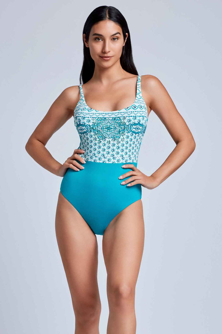 Voe entre as ondas com o nosso fato de banho inteiro esmeralda. Copas removíveis e ombreiras ajustáveis oferecem conforto e suporte enquanto desces dos trampolins e saltas entre as ondas. O design do decote redondo acrescenta um toque de estilo. Desafia-te e mostra o teu espírito aventureiro com este fato!