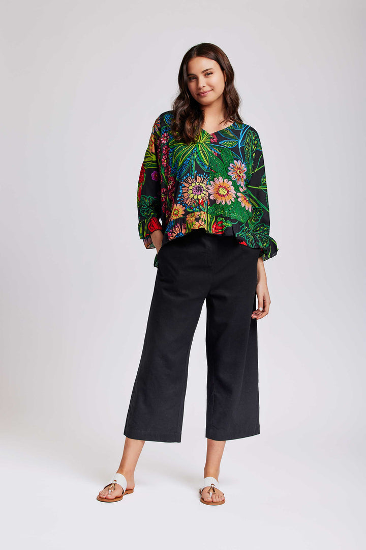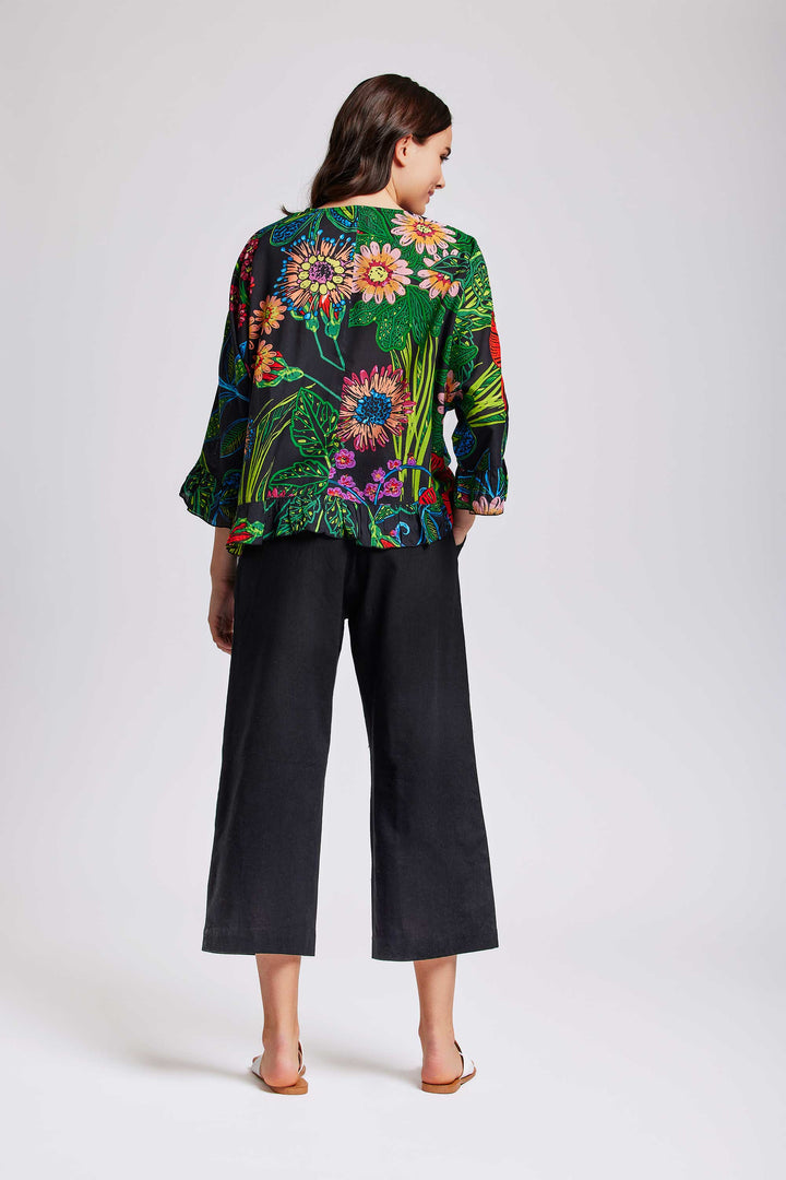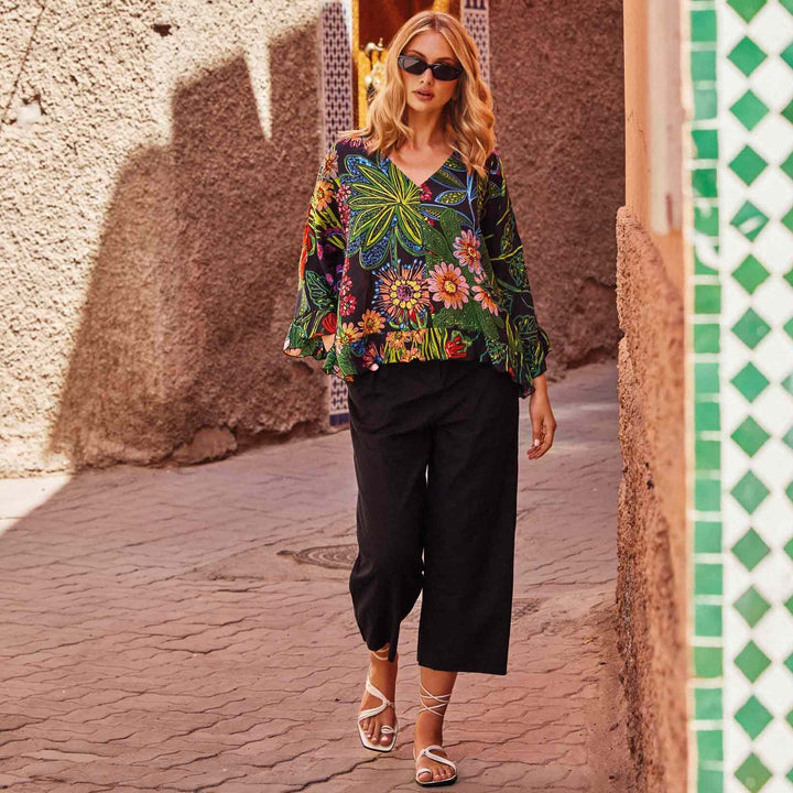 Estas calças capri em linho apresentam um ajuste confortável graças ao elástico na cintura. O tecido leve em mistura de linho torna-as ideais para os dias mais quentes, garantindo conforto e frescura. Com o modelo capri, é um item indispensável para o verão.